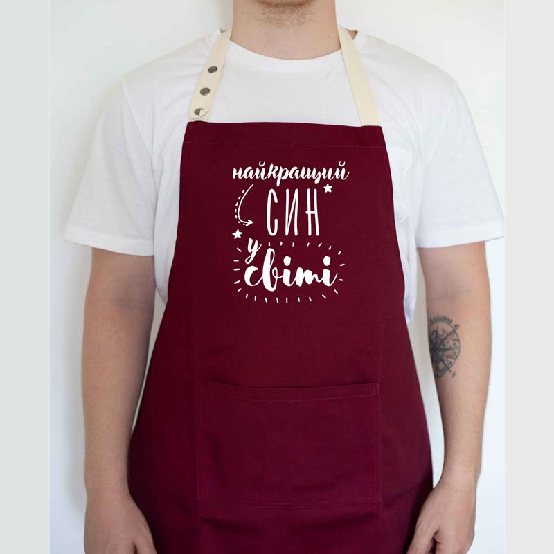 Мужской фартук "Найкращий син у світі" (бордовый)