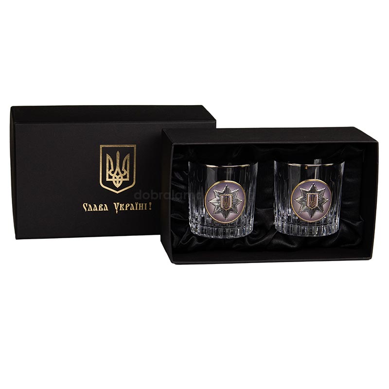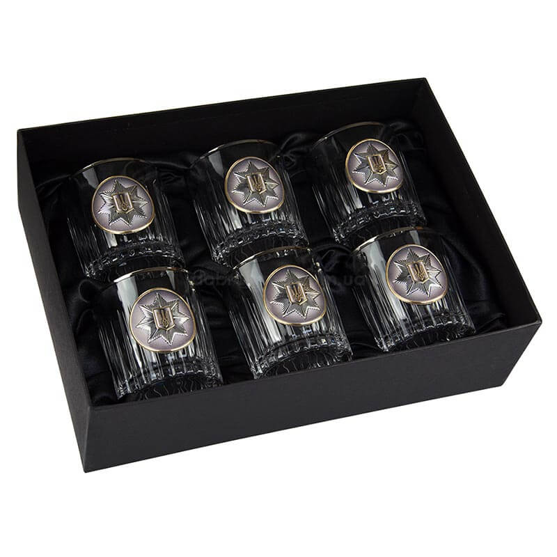 Но это еще не все! Каждый стакан украшен накладкой в виде эмблемы Национальной полиции Украины выполненной из серебра 925-й пробы и золота 24 Kt, а также декорирован золотой каймой.
