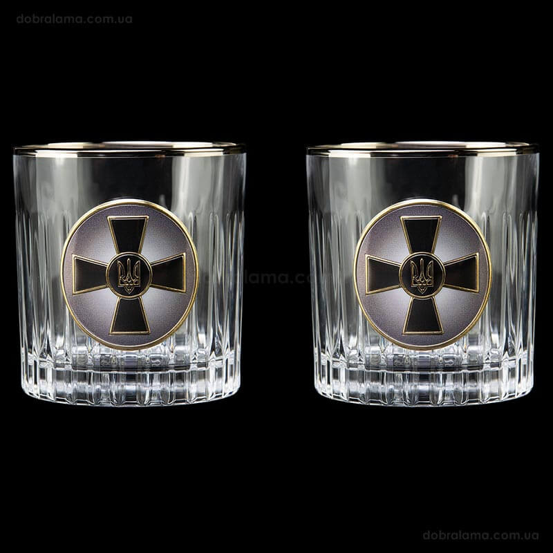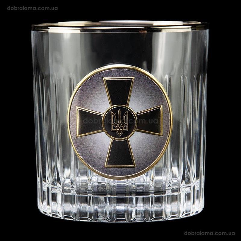 Но это еще не все! Каждый стакан украшен накладкой в виде эмблемы ВСУ выполненной из серебра 925-й пробы и золота 24 Kt, а также декорирован золотой каймой.