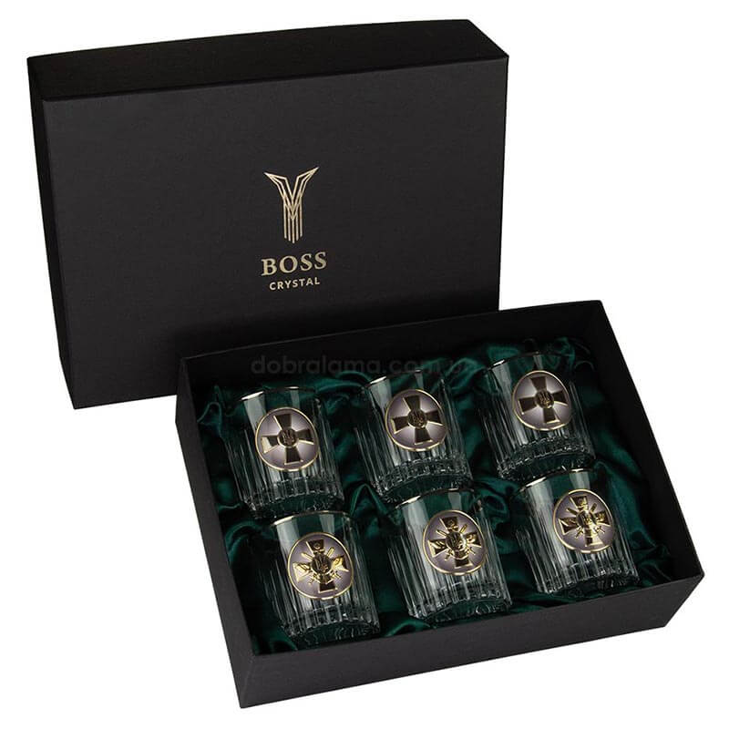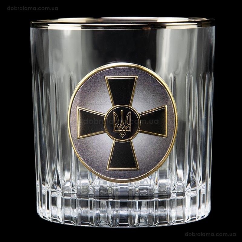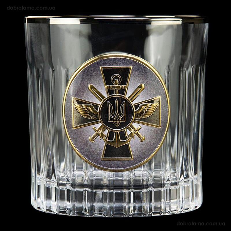 Но это еще не все! Каждый стакан украшен накладкой в виде эмблемы ВСУ/Генштаба ВСУ выполненной из серебра 925-й пробы и золота 24 Kt, а также декорирован золотой каймой.