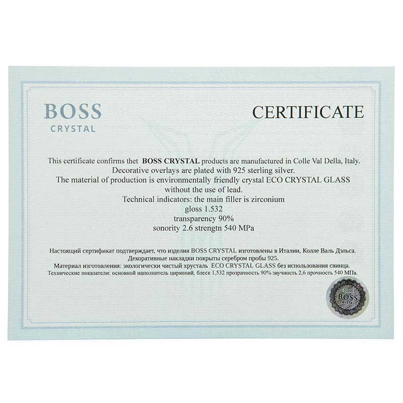 Изготовленные из высококачественного хрусталя, стаканы объемом 360 мл восхищают своей изысканностью. В производстве хрусталя используется современная технология без использования оксида свинца, который заменен на цирконий, для прочности и звонкости, и барий для оптической игры света на гранях изделий. Плавление кварцита происходит в экологически чистых электрических печах.