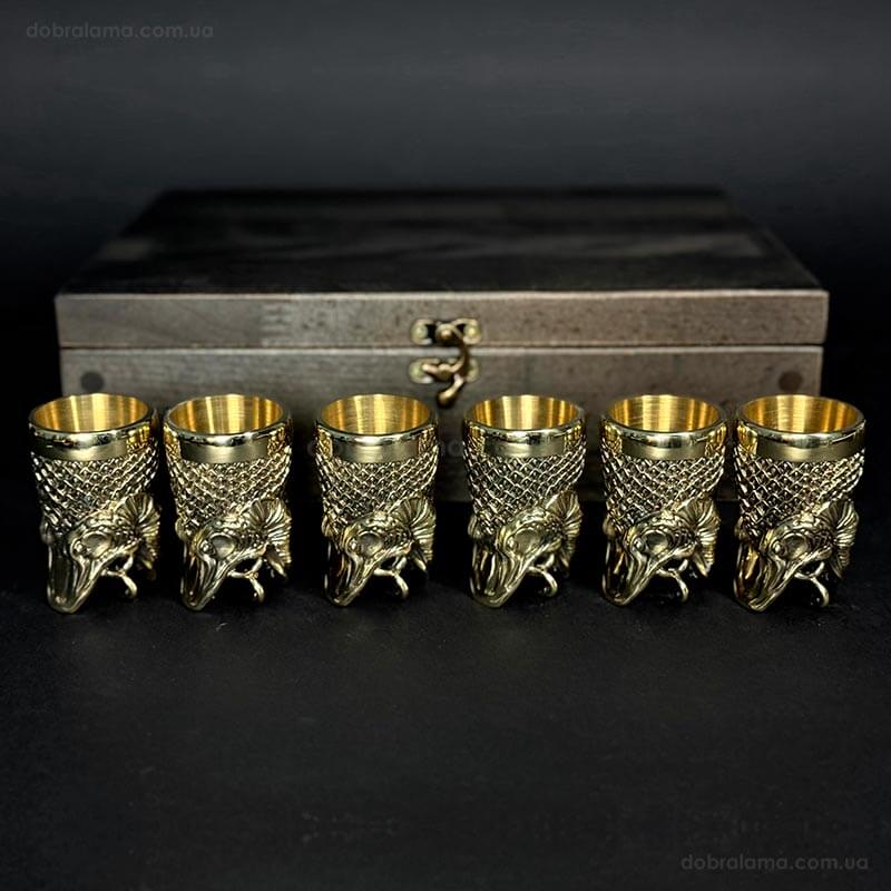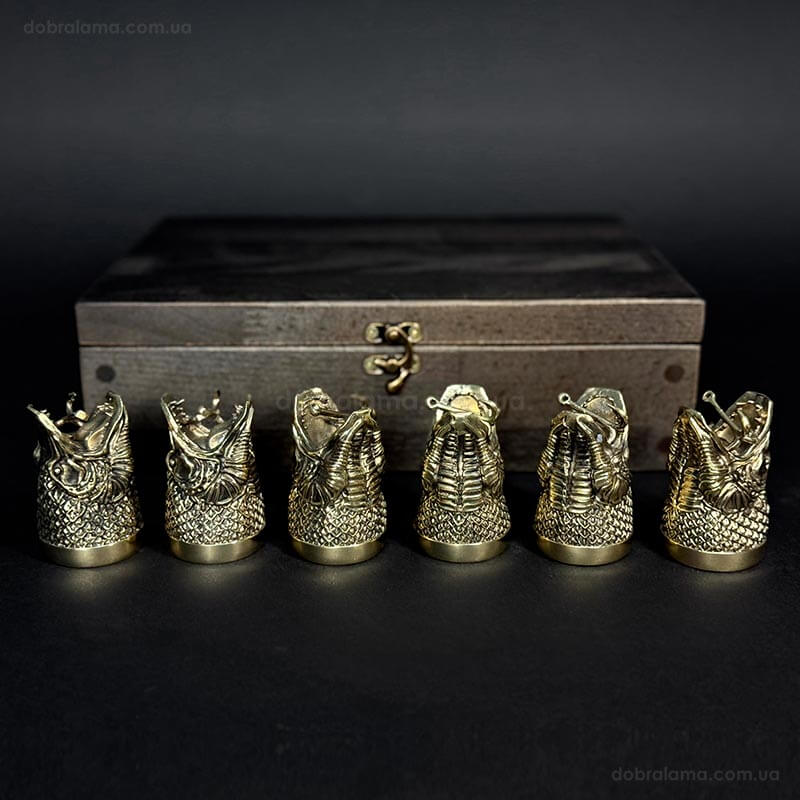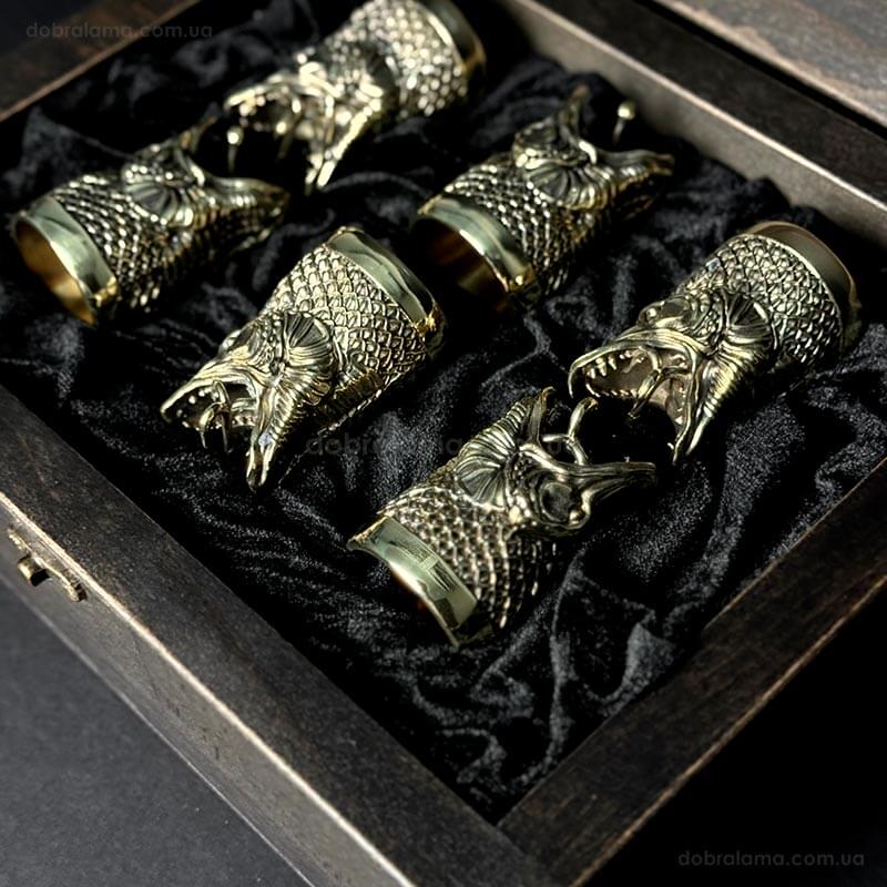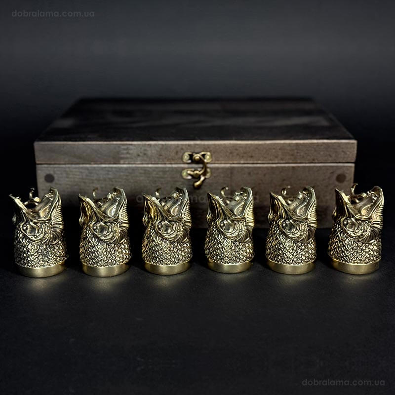 Набор бронзовых стопок «Царский улов» (6 шт) в деревянной коробке