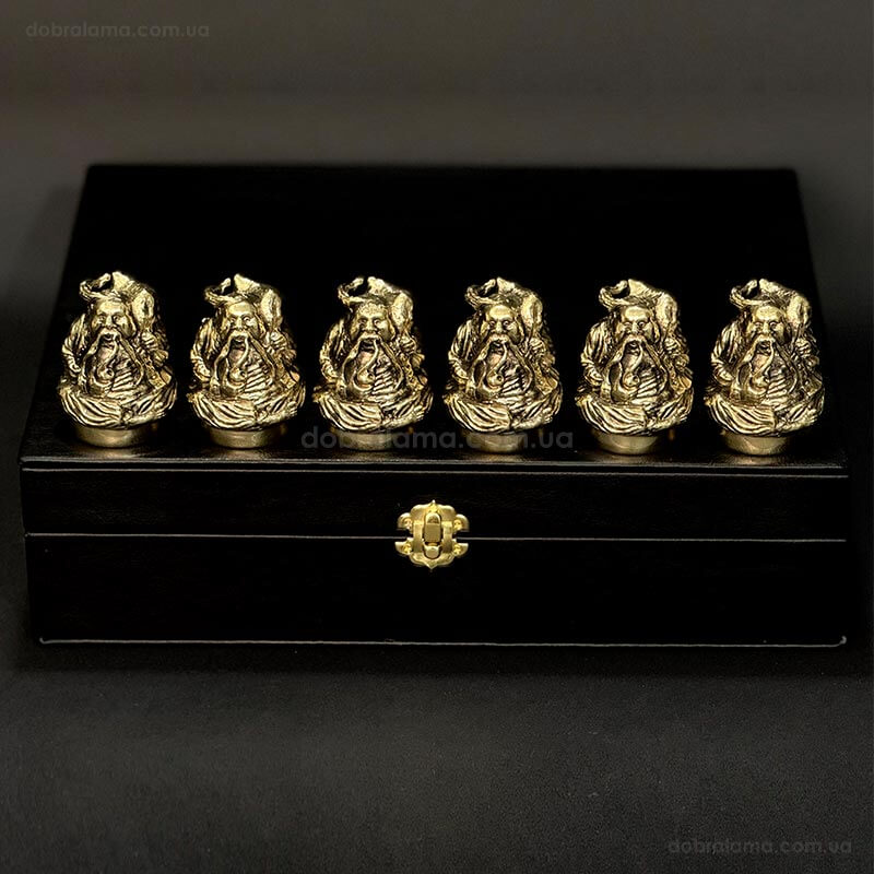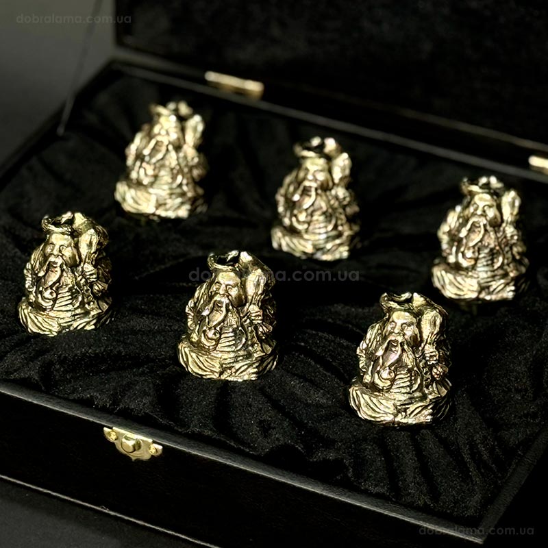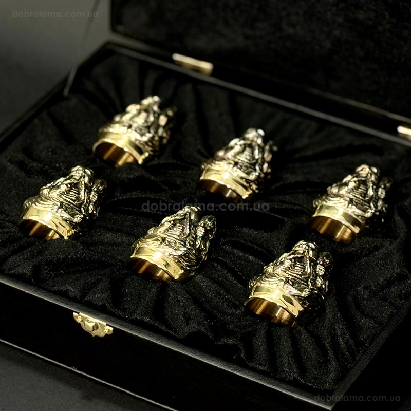 Набор бронзовых стопок «Козацька рада» (6 шт) в кейсе из экокожи