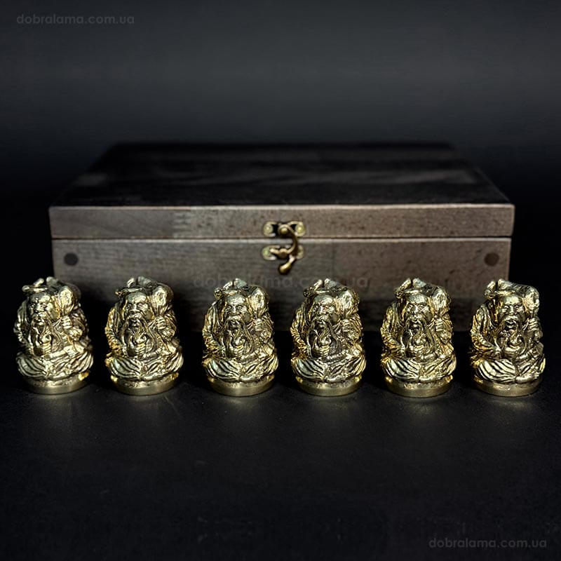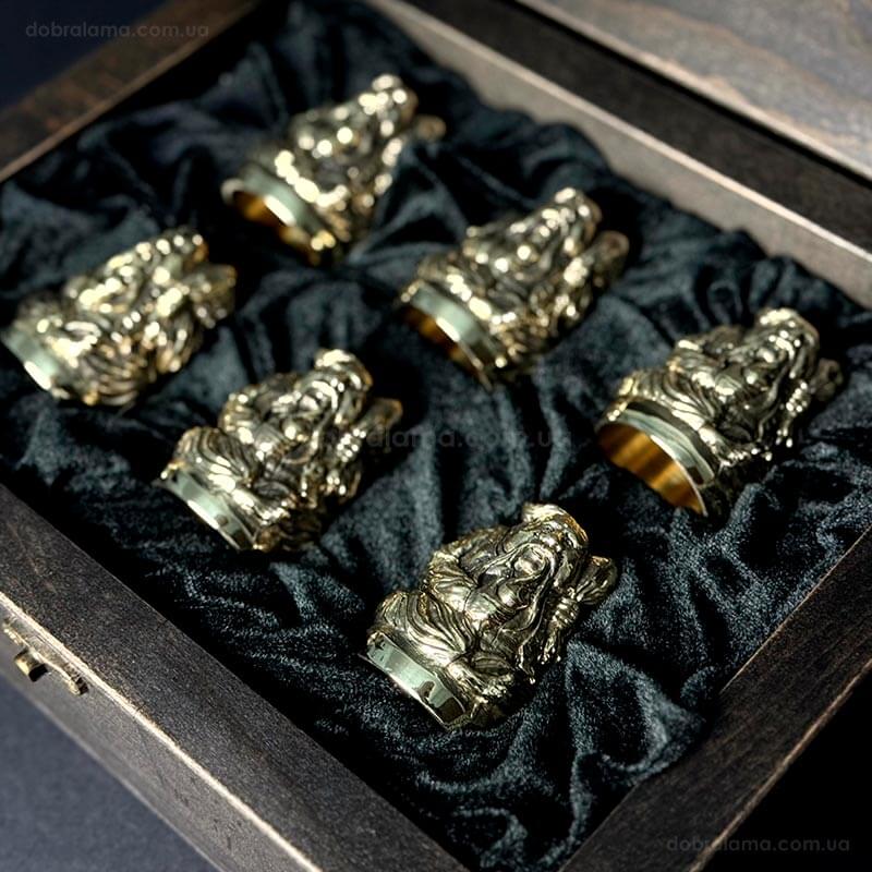Набор бронзовых стопок «Козацька рада» (6 шт) в деревянной коробке