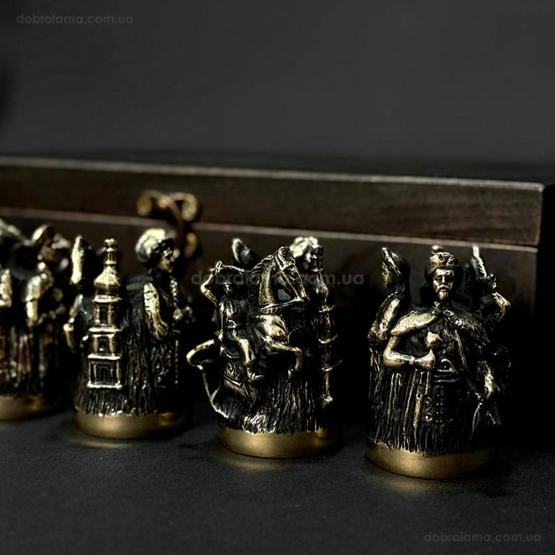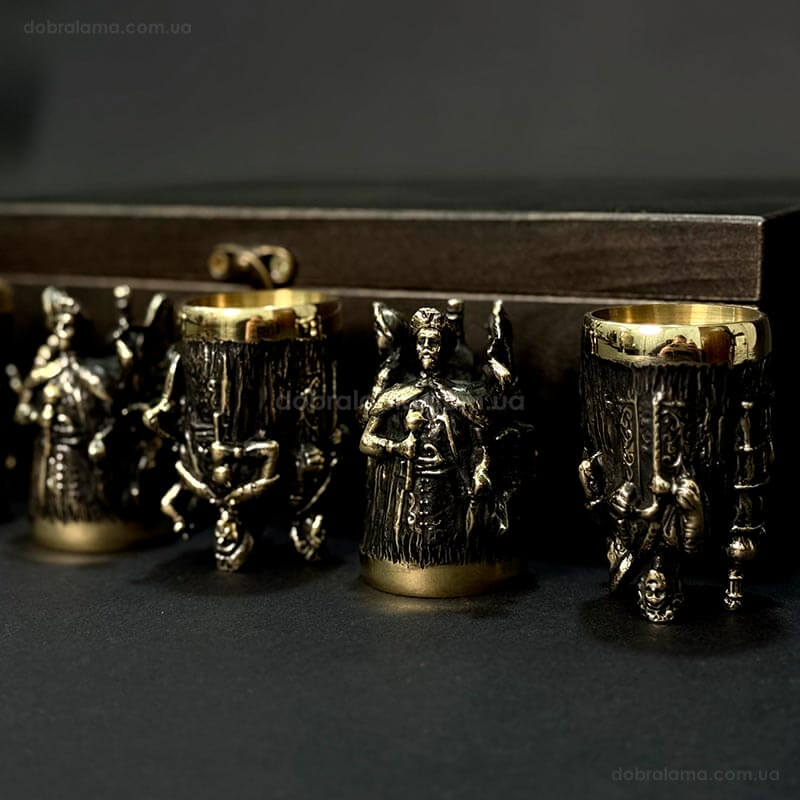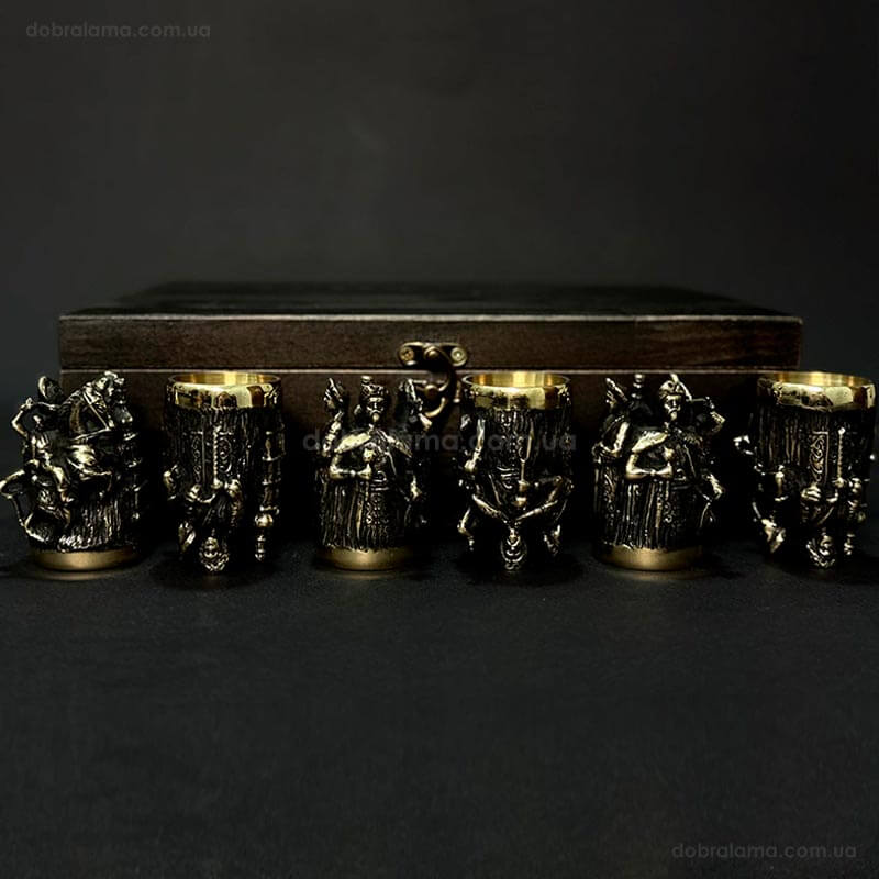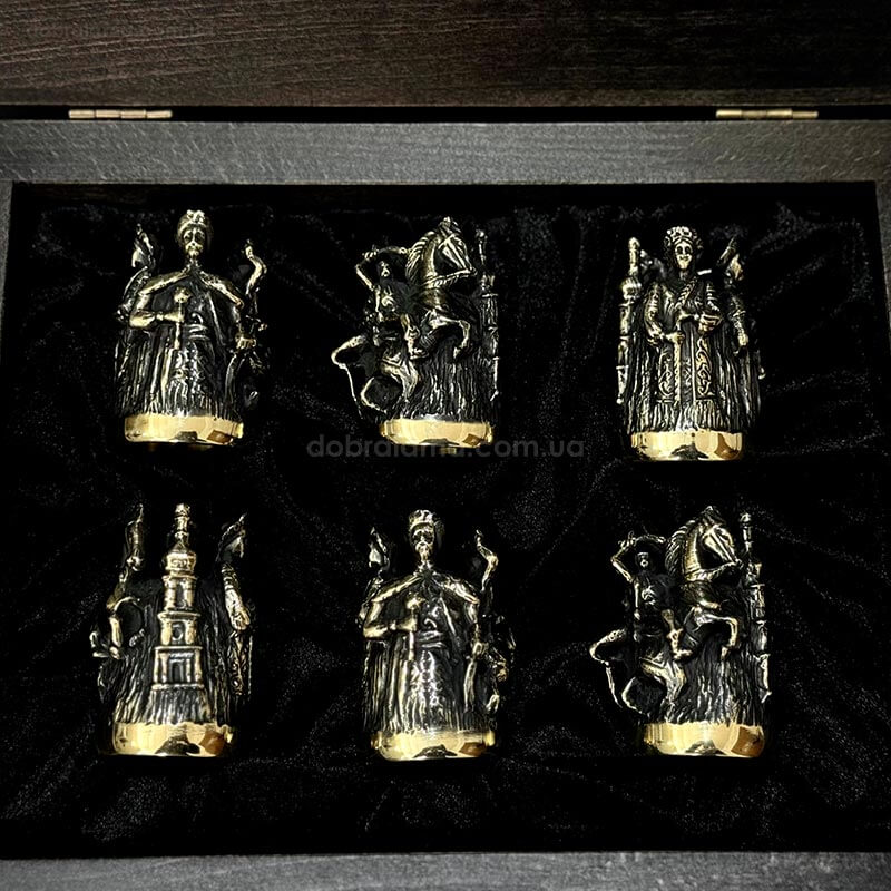 Набор бронзовых стопок «Київська Русь» (6 шт) в деревянной коробке
