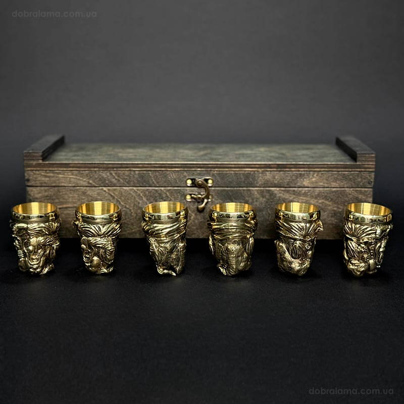 Набор бронзовых стопок «Козацька рада» (6 шт)