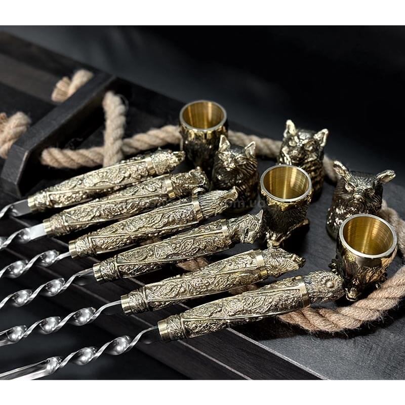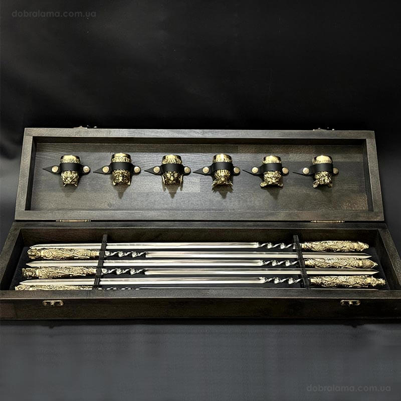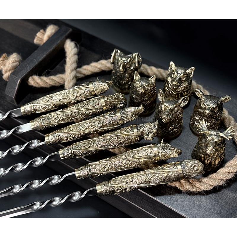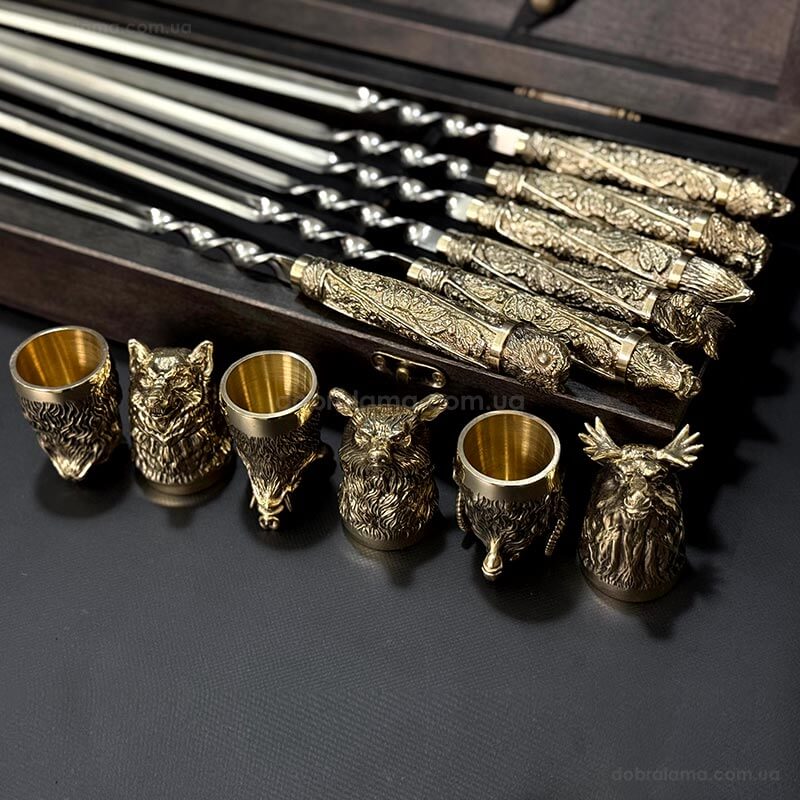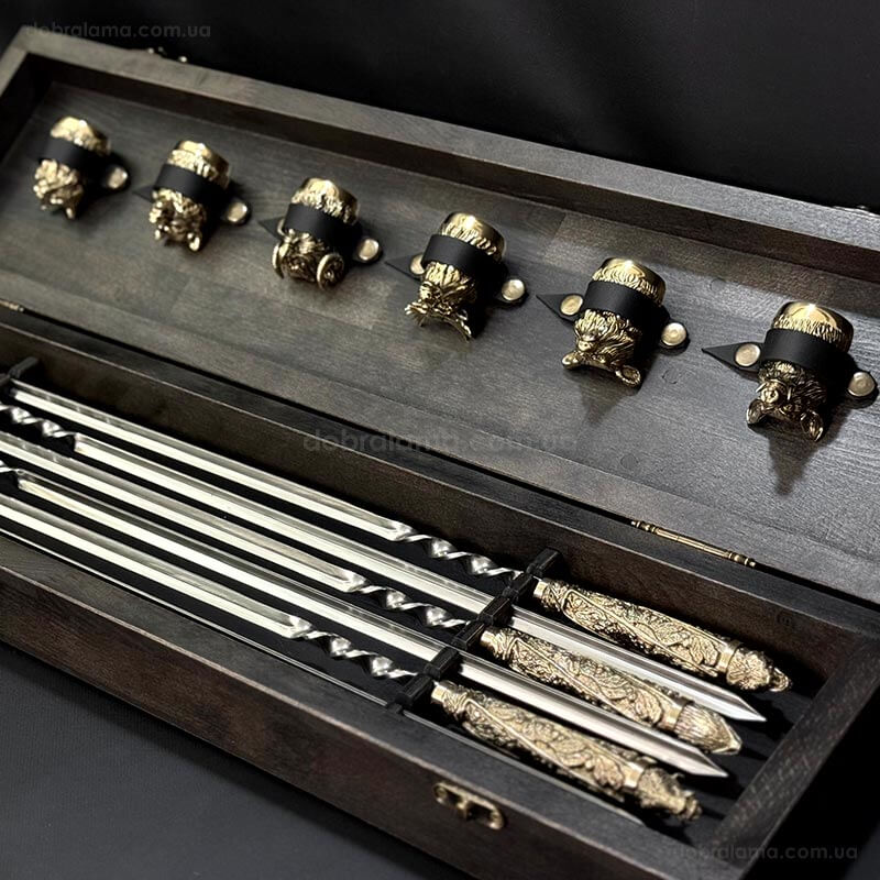 Набор для шашлыка «Дикие звери» со стопками (в деревянном кейсе)