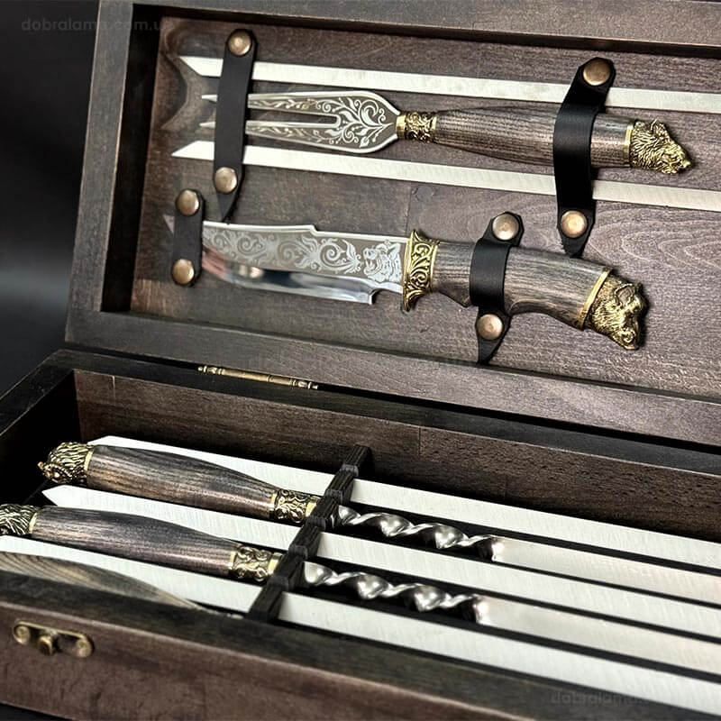 Набор для шашлыка «Охотничий ясень» (в деревянном кейсе)