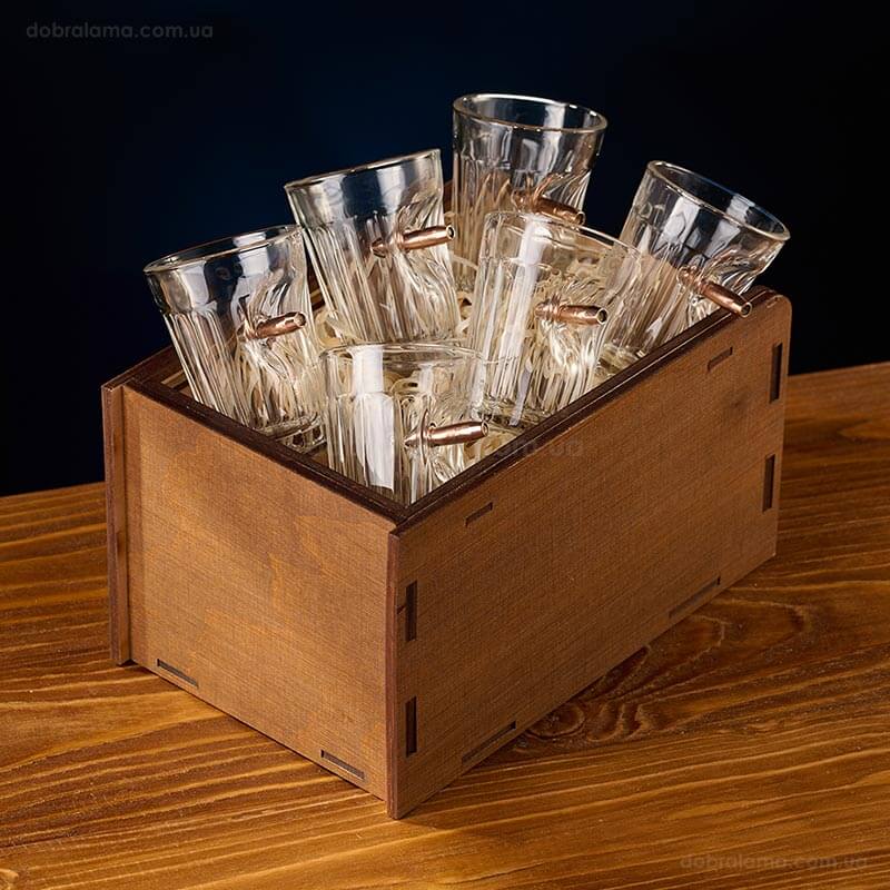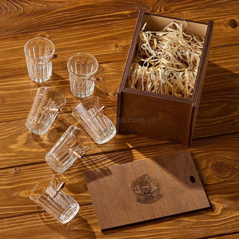 Набор для алкоголя с пулей в коробе с БК (8 стопок и графин)