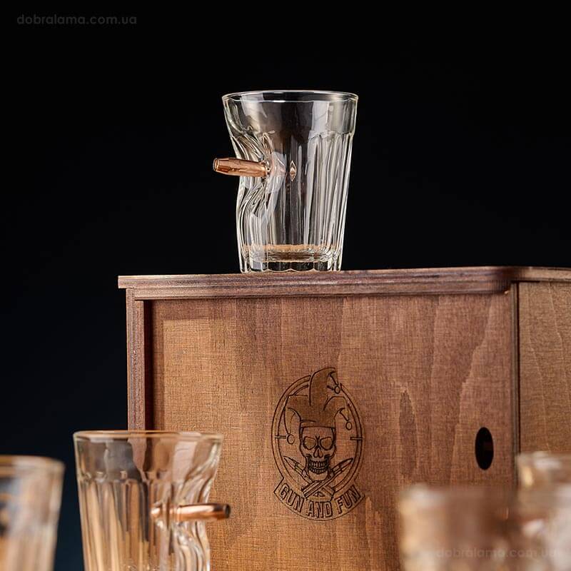 Набор 6-ти стаканов для виски с пулей 7.62 мм в коробе с БК
