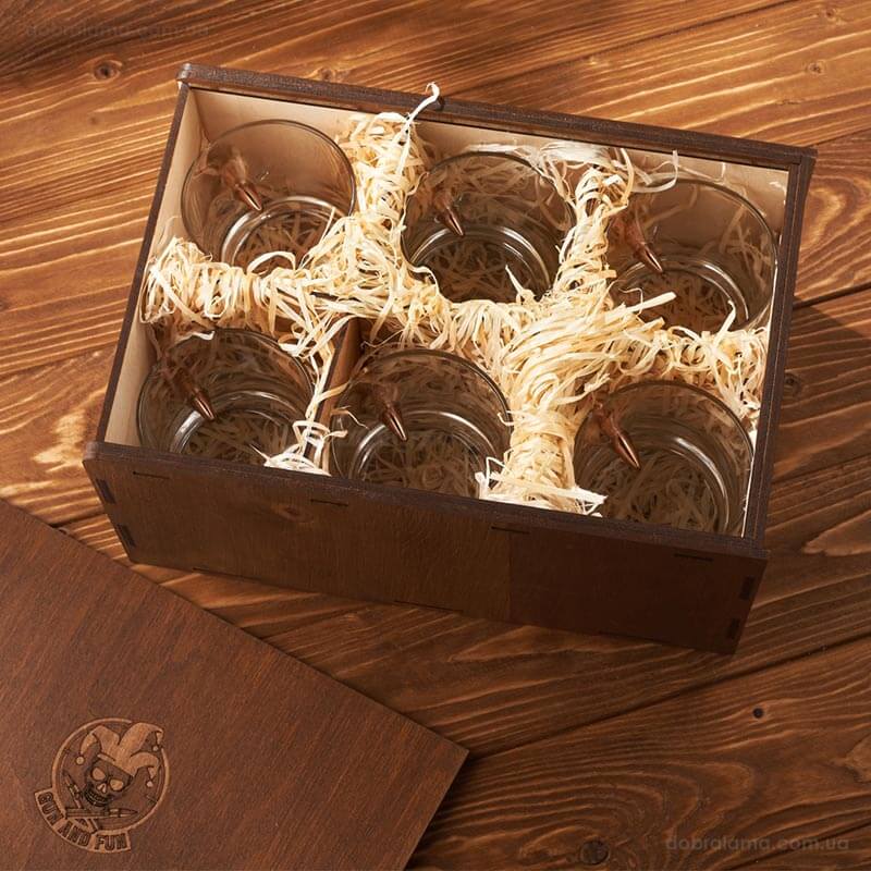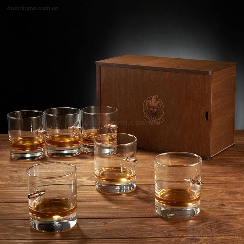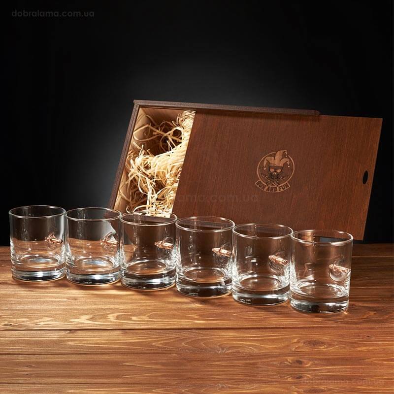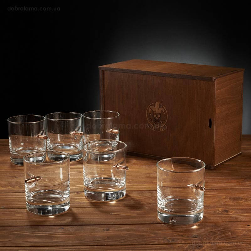 Набор 6-ти стаканов для виски с пулей 7.62 мм в коробе с БК