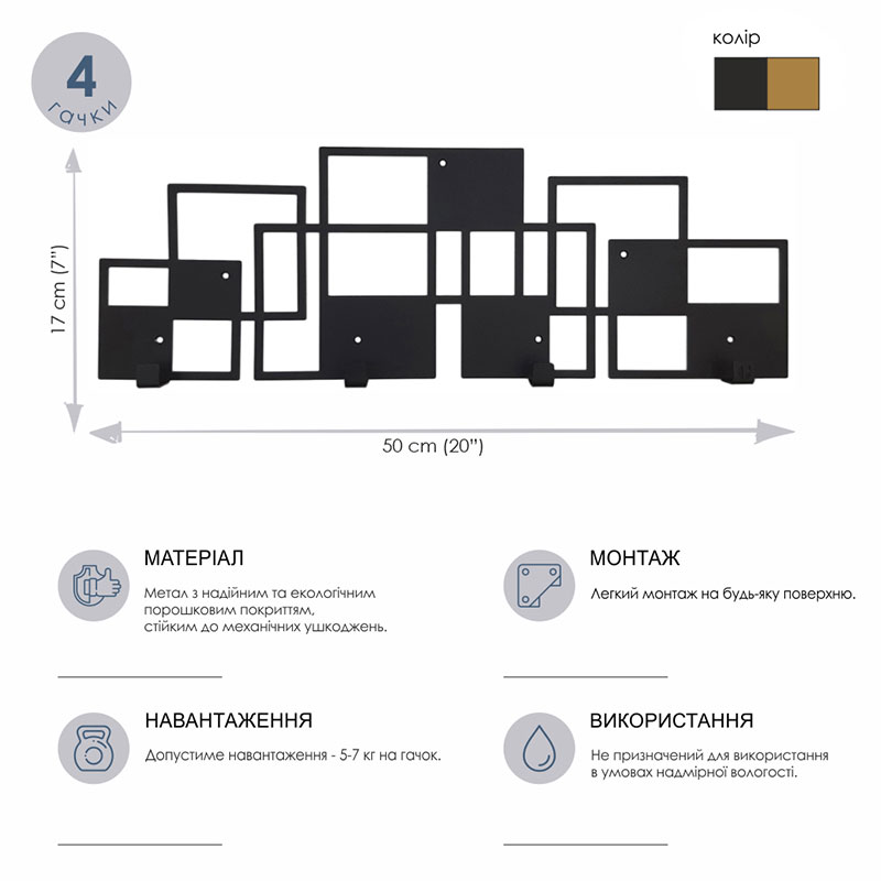 Настенная вешалка для одежды Bau (черная), 50х17 см