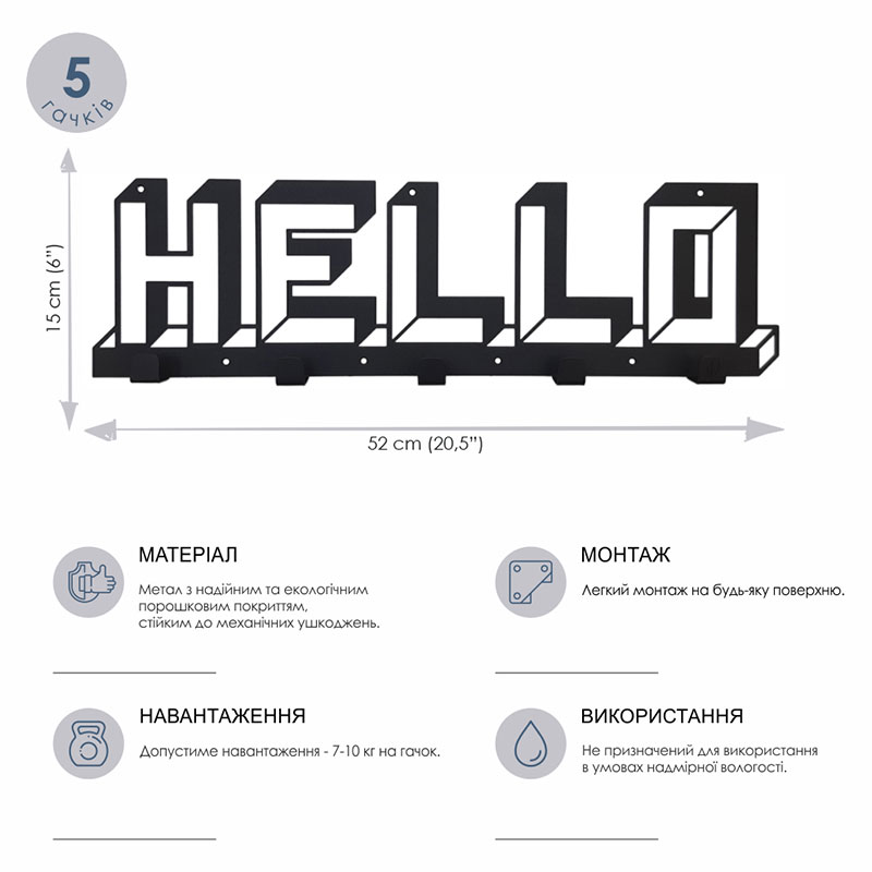 Настенная вешалка для одежды Hello (черная), 52х15 см