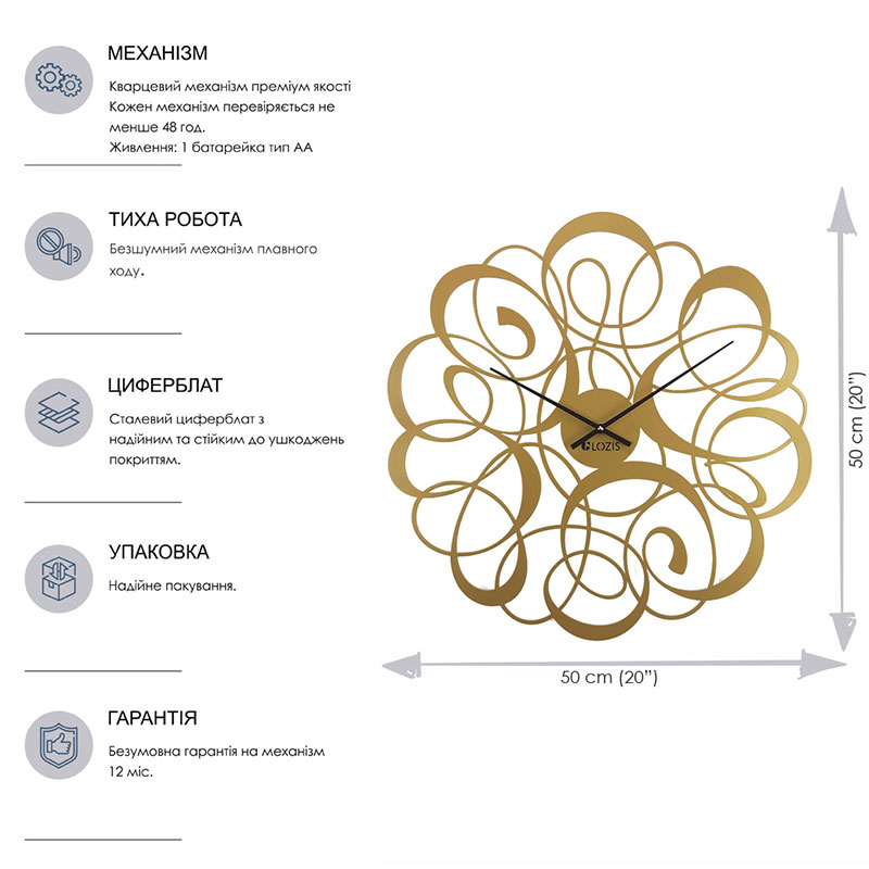 Настенные часы Freya Bronze (бронзовые), 50 см