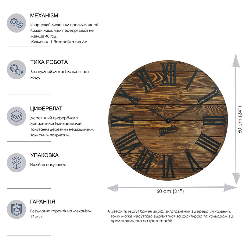 Настенные часы из дерева Glozis Kansas Mokko, 60 см