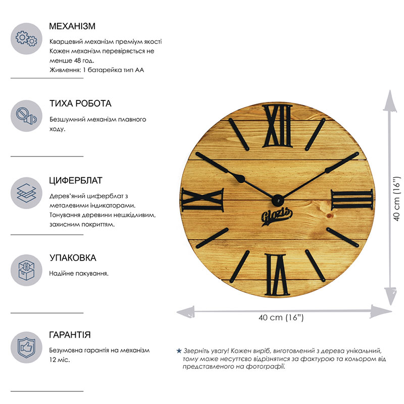 Настенные часы из дерева Glozis Nevada Gold, 40 см