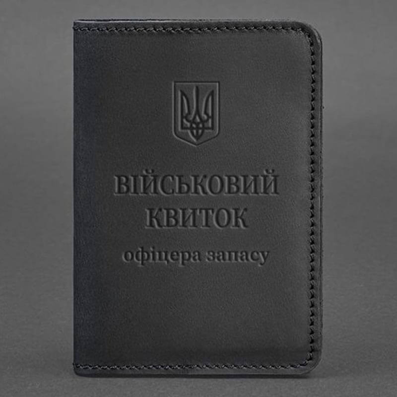Обложка для военного билета офицера запаса 8.0 (черная) 12х9,5, кожа Crazy Horse