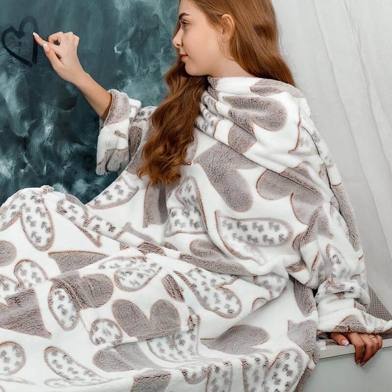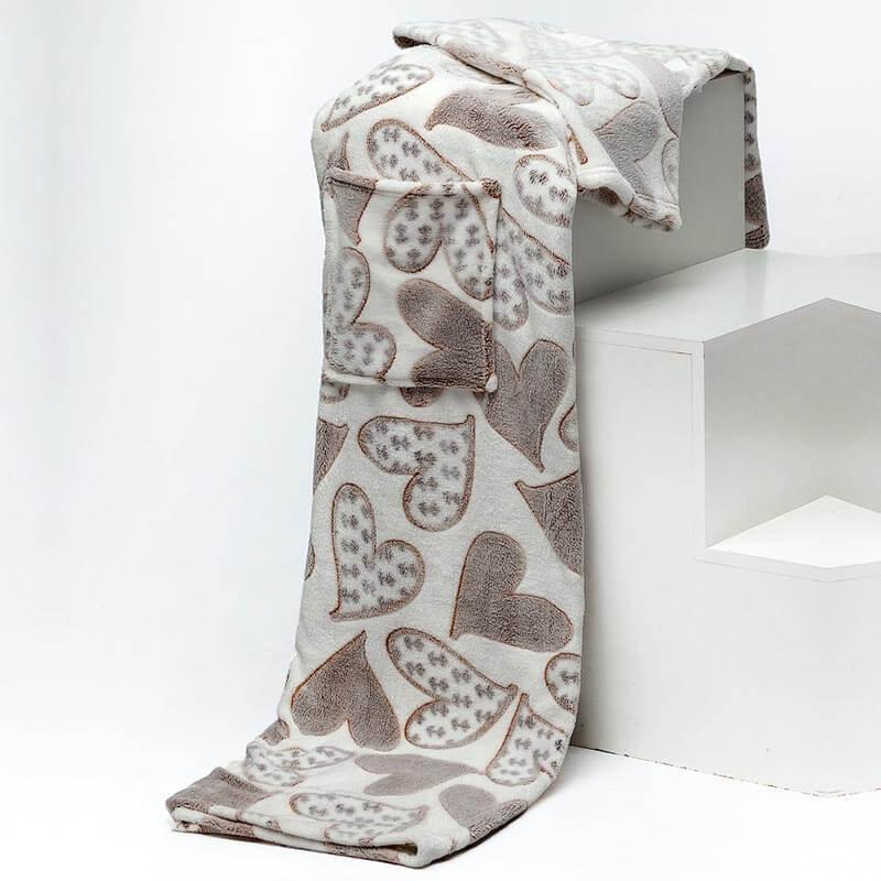 Плед с рукавами из микрофибры «Сердечки на белом» 200х160 см
