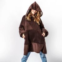 Худи-плед с рукавами и капюшоном из микрофибры (коричневый)