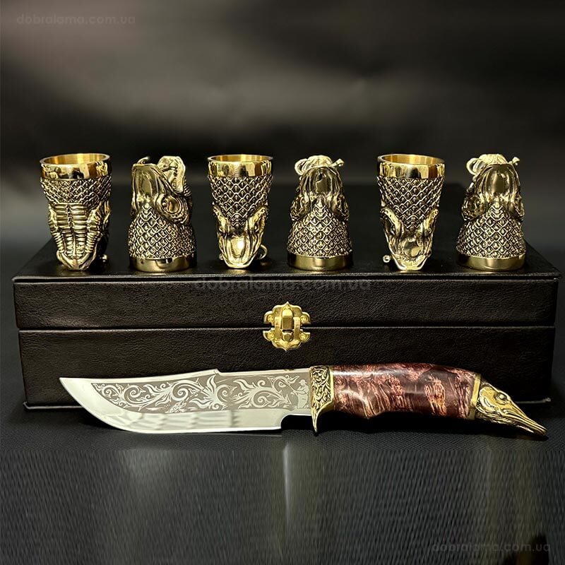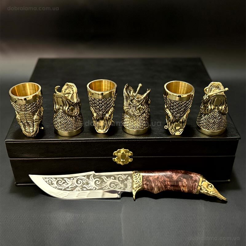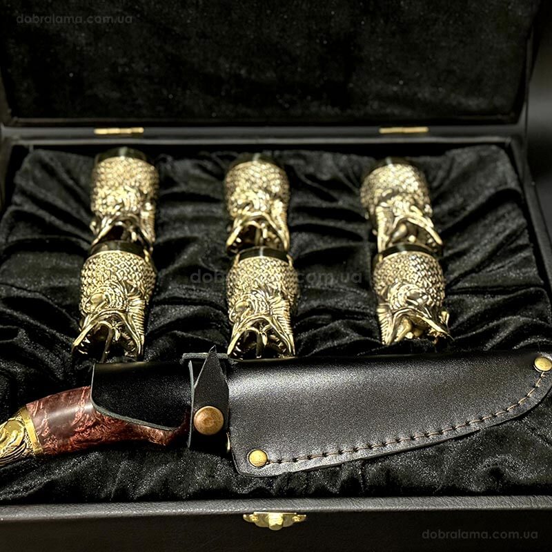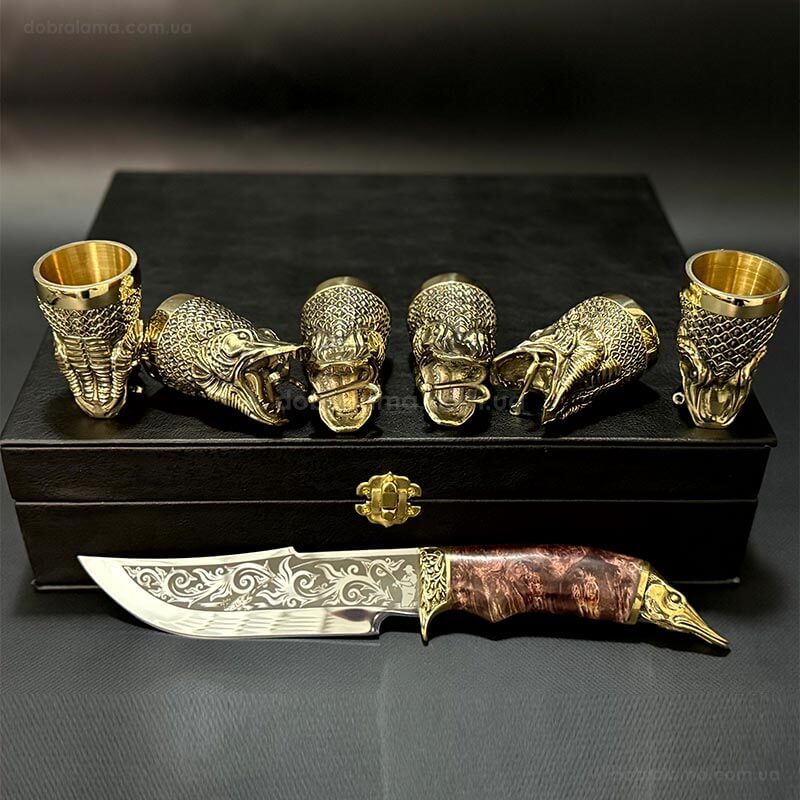 Подарочный набор для мужчин «Царский улов» (6 бронзовых рюмок, нож)