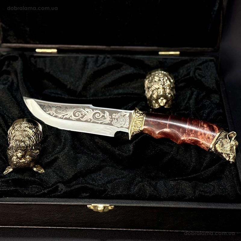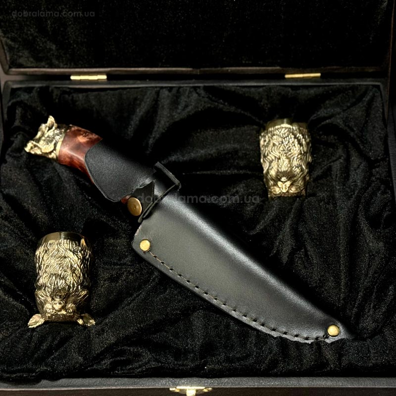 Подарочный набор для мужчин «Охотничий» (2 бронзовых рюмки, нож)