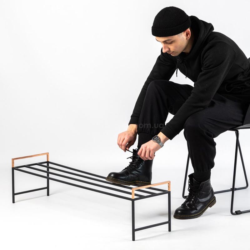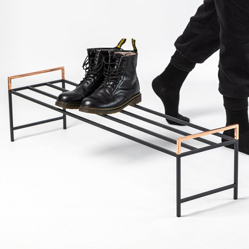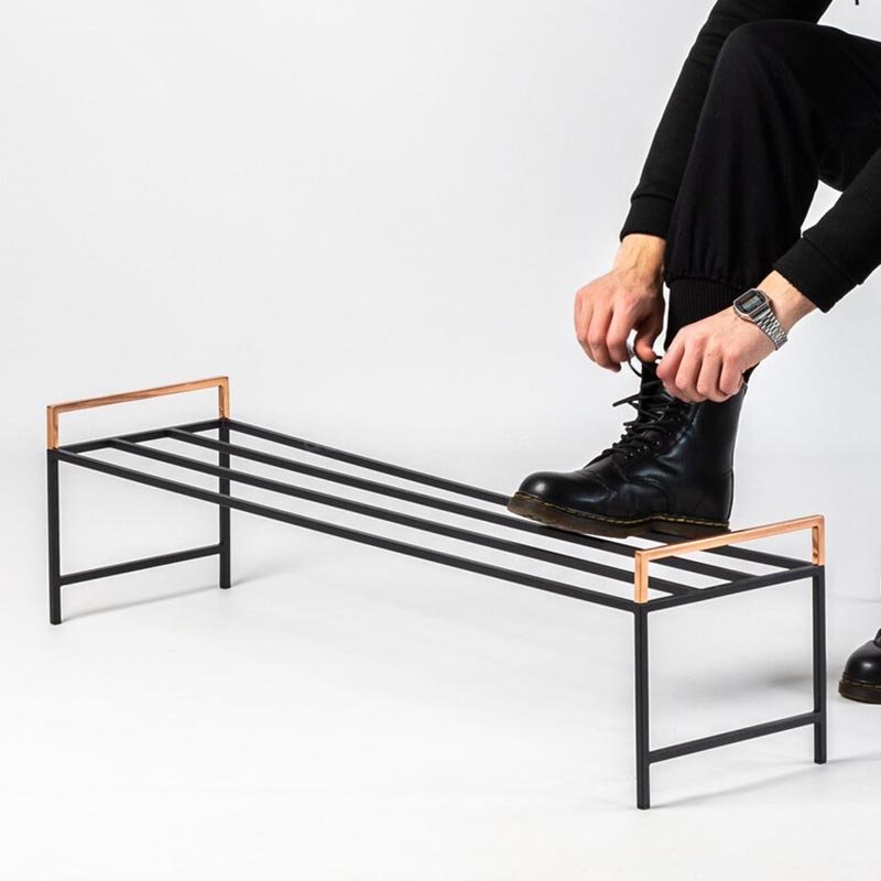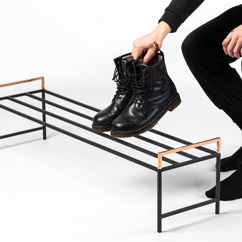 Металлическая подставка для обуви с медными ручками (черная)