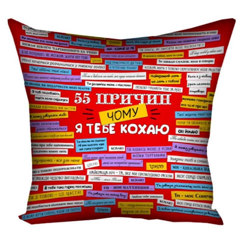 Подушка «55 причин, чому я тебе кохаю» 40х40 см (красная)