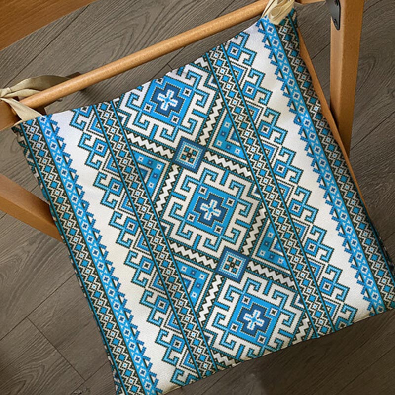 Подушка на стул с завязками «Украинский орнамент голубой»