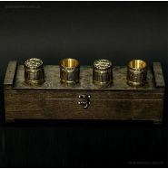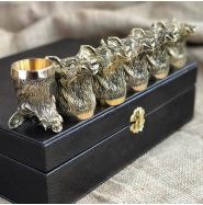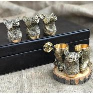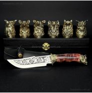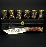 Подарочный набор для мужчин «Козацька рада» (6 бронзовых стопок, нож) в кейсе из экокожи