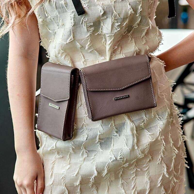Оригинальный набор, который состоит из 2-х сумок и 2-х ремней, позволит бесконечно экспериментировать с образами и стилями. Так как сумочки и ремни можно комбинировать различными способами. Вы можете носить сразу обе сумки на поясе, или выбрать только одну. Также длинный ремешок-цепочка позволяет носить любую из сумочек на плече или через плечо. Вы можете сочетать сразу две сумки в образе: поясную и кроссбоди.