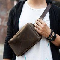 Поясная сумка-бананка Dropbag Maxi кожаная (темно-коричневая)