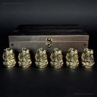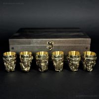 Набор бронзовых стопок «Козацька рада» (6 шт) в деревянной коробке