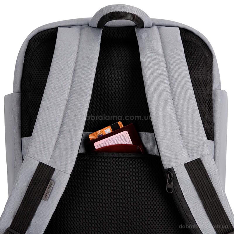 Самые ценные вещи и документы можно хранить в потайном кармане на спинке рюкзака. Кроме того, рюкзак имеет большой фасадный карман и несколько внутренних карманов, включая тот, который предназначен для ноутбука и мелких вещей.