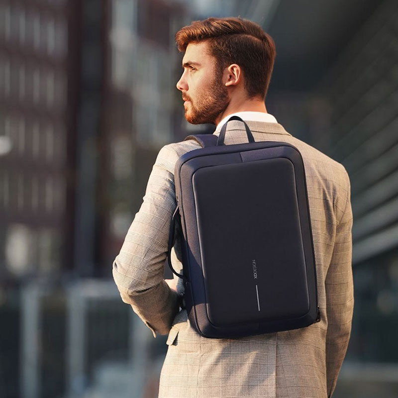 Bobby Bizz — это деловой рюкзак и портфель два-в-одном. В нем присутствует дополнительный кодовый замок, в правую лямку интегрирована стальная проволока для фиксации рюкзака к неподвижным объектам. Bobby изготовлен из непрорезаемых водоотталкивающих материалов, имеет встроенный USB кабель для зарядки, удобные скрытые карманы, светоотражающие элементы.