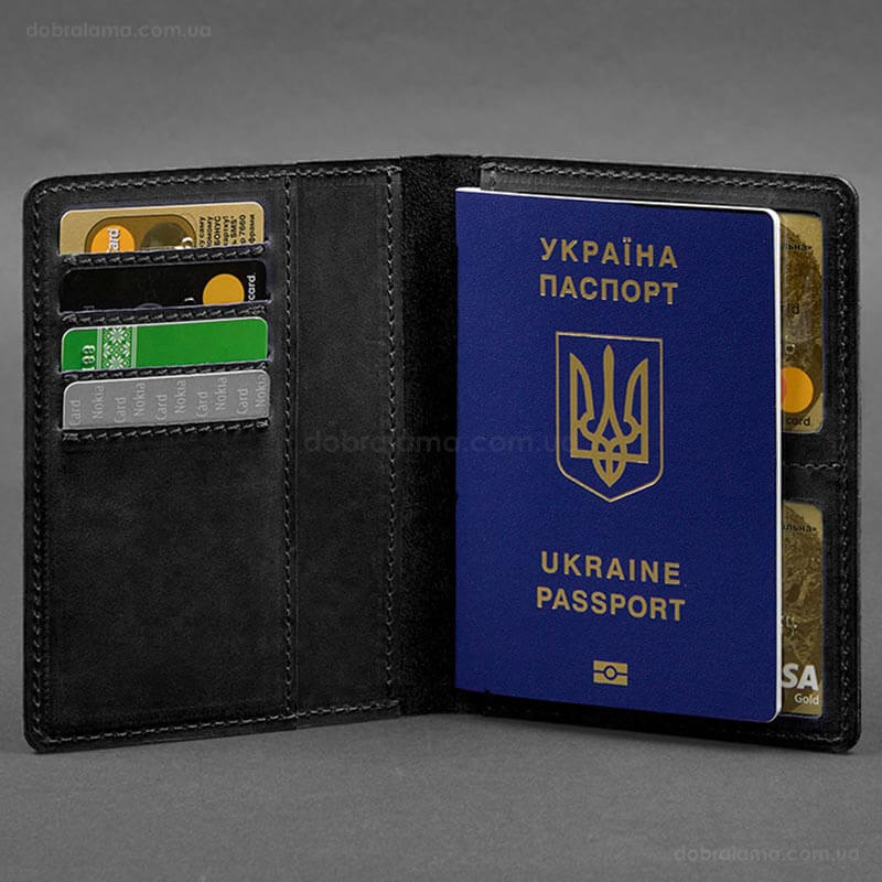 Внутри обложки находятся два больших кармана, которые подходят для хранения паспортов и других документов.