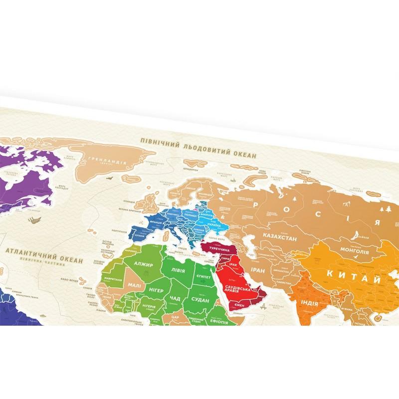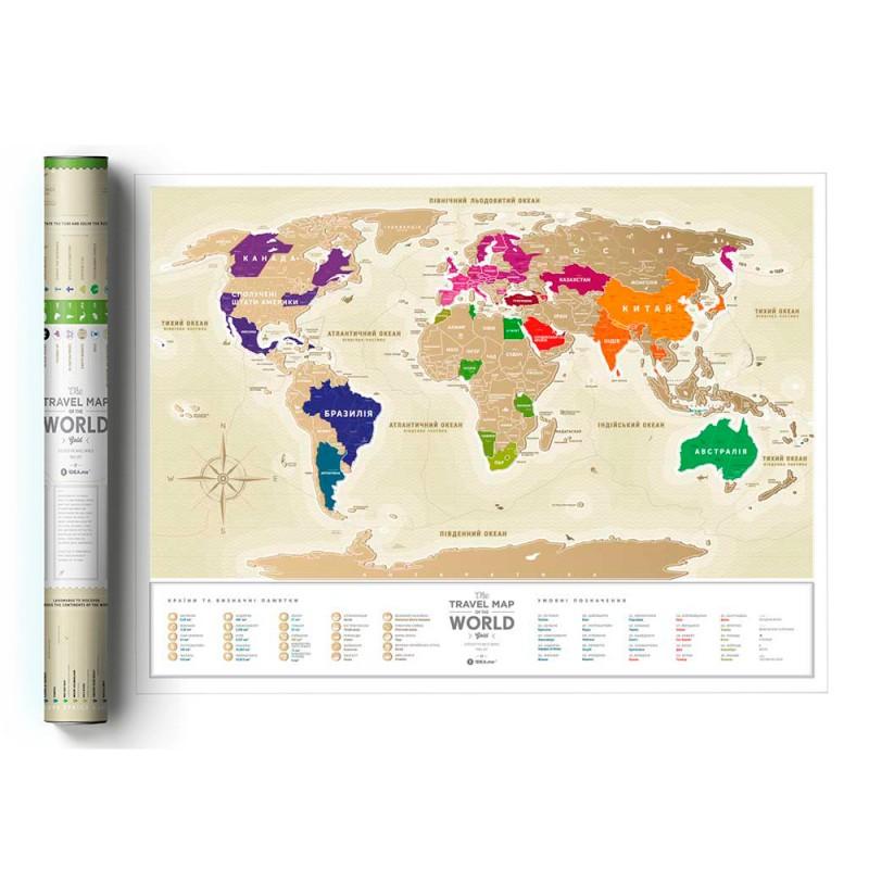 Travel Map Gold World — ослепительно красивая скретч-карта, которая, словно лучший друг, будет мотивировать тебя открывать для себя новые страны и узнавать другие культуры. Она покажет, где находятся современные чудеса мира, расскажет о маленьких странах, которые почти незаметны на карте, и продемонстрирует, на сколько штатов или провинций поделены страны-гиганты.
