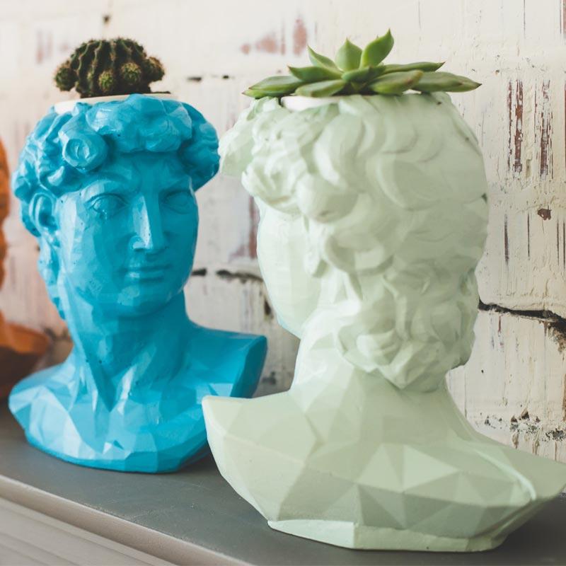 Скульптура вазон-органайзер "Давид" (светло-синий)