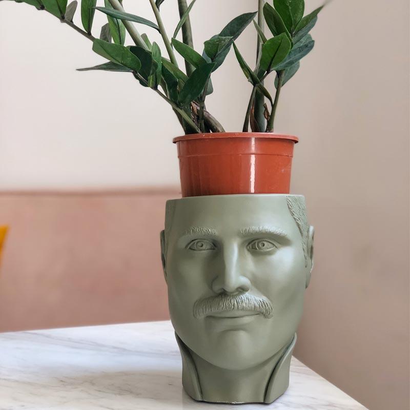 Скульптура вазон-органайзер "Фредди Меркьюри" (светло-оливковый)
