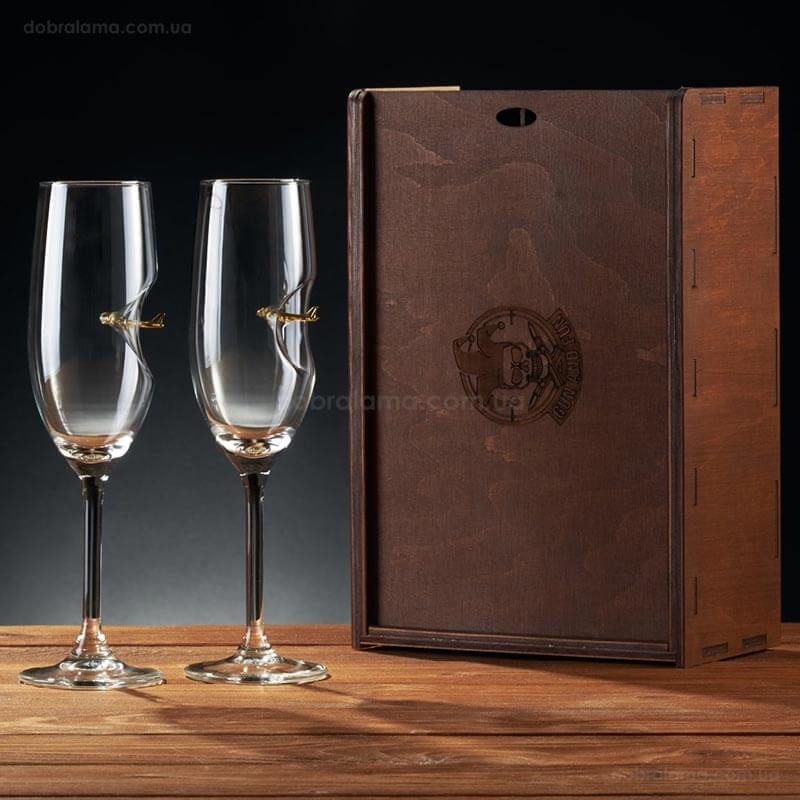 Набор 2-х бокалов для шампанского с пулей 7.62 мм