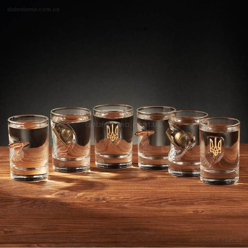 Набор 6-ти стаканов для виски из богемского стекла с пулей 7.62 мм