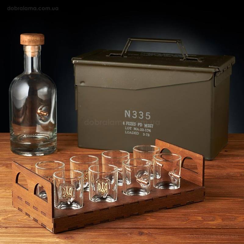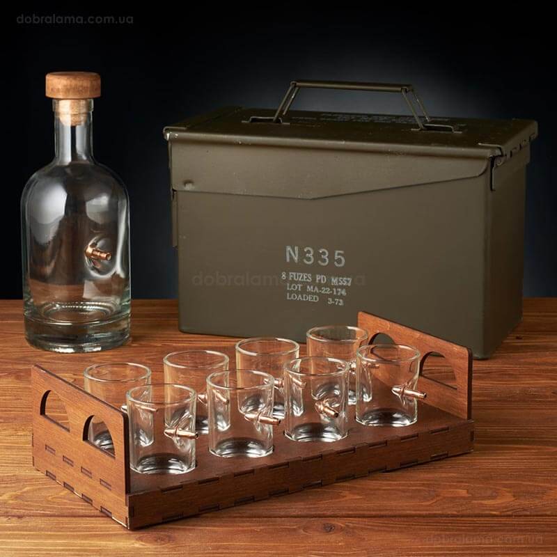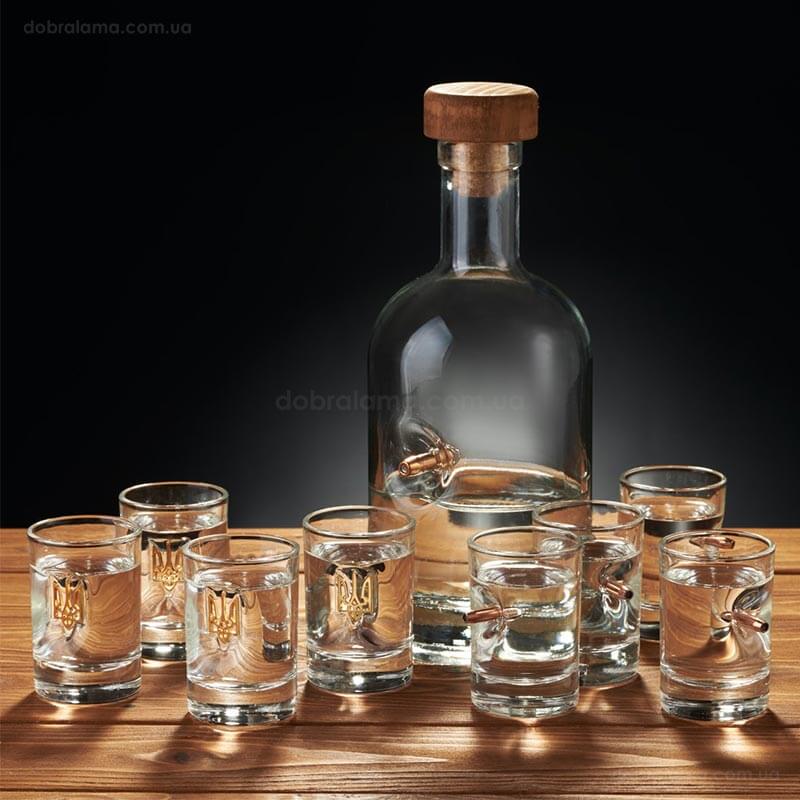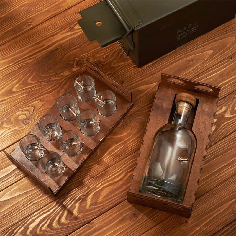 Набор для алкоголя с пулей в коробе с БК (8 стопок и графин)