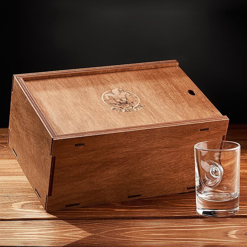 Не стоит переживать на счет упаковки, мы позаботились и поместили стакан в деревянную подарочную коробку.