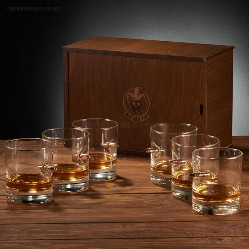 Набор 6-ти стаканов для виски с пулей 7.62 мм в коробе с БК