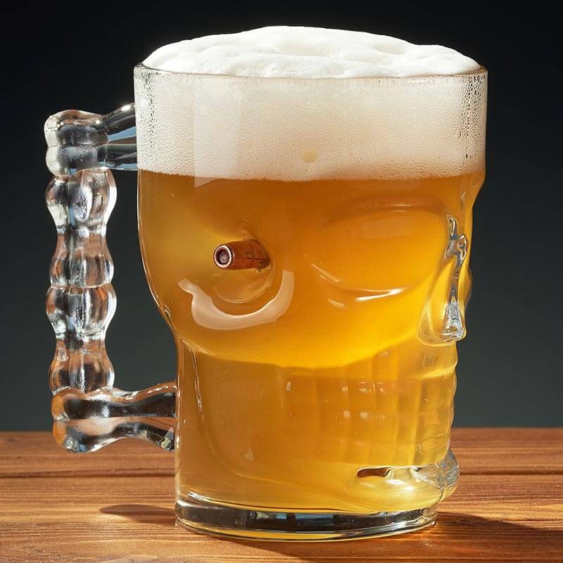 Пивной бокал-череп с пулей (с ручкой)
