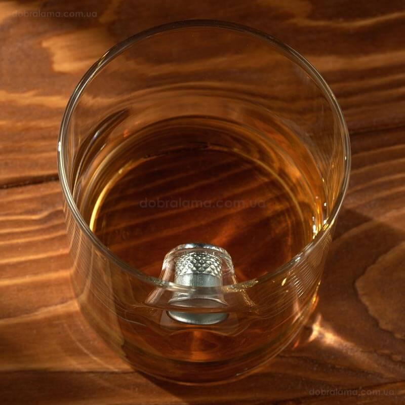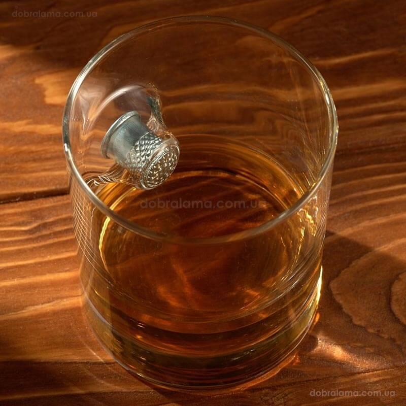 Стакан с вплавленным наперстком изготовлен из качественного стекла, которое не тускнеет и не темнеет.
