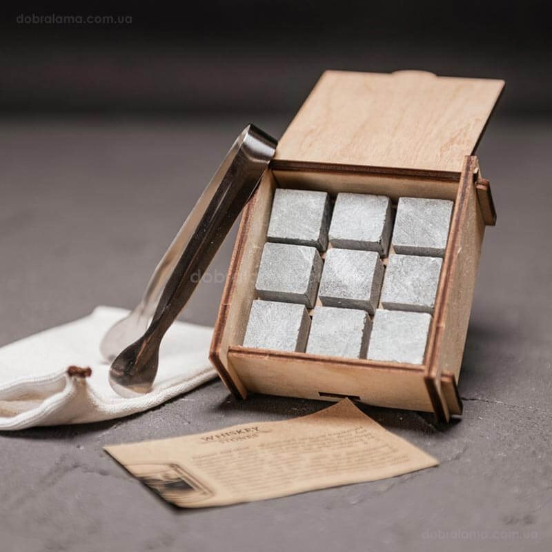 Камни для виски - то, что вам нужно. Стальные камни можно использовать для охлаждения виски без разбавления и не меняя вкуса напитка (как в случае с использованием льда). В отличие от кубиков льда, стальные кубики всегда находятся на дне бокала и не мешают наслаждаться напитком. Для идеального эффекта, немного смочите кубики и поставьте в морозильную камеру - через пару часов стальные камни готовы для использования