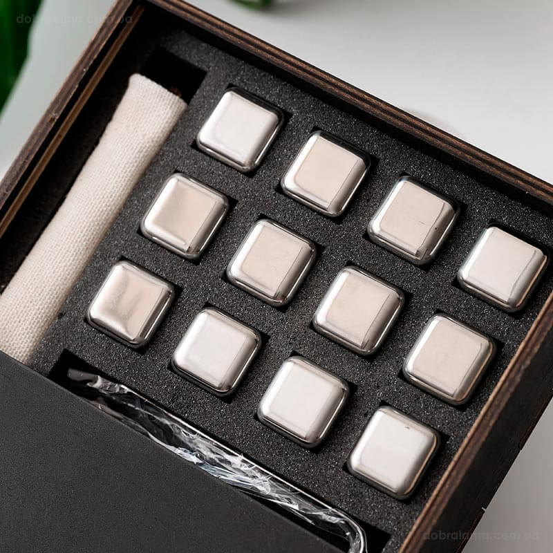 Стальные кубики для охлаждения виски WS в деревянной коробке (12 шт.)