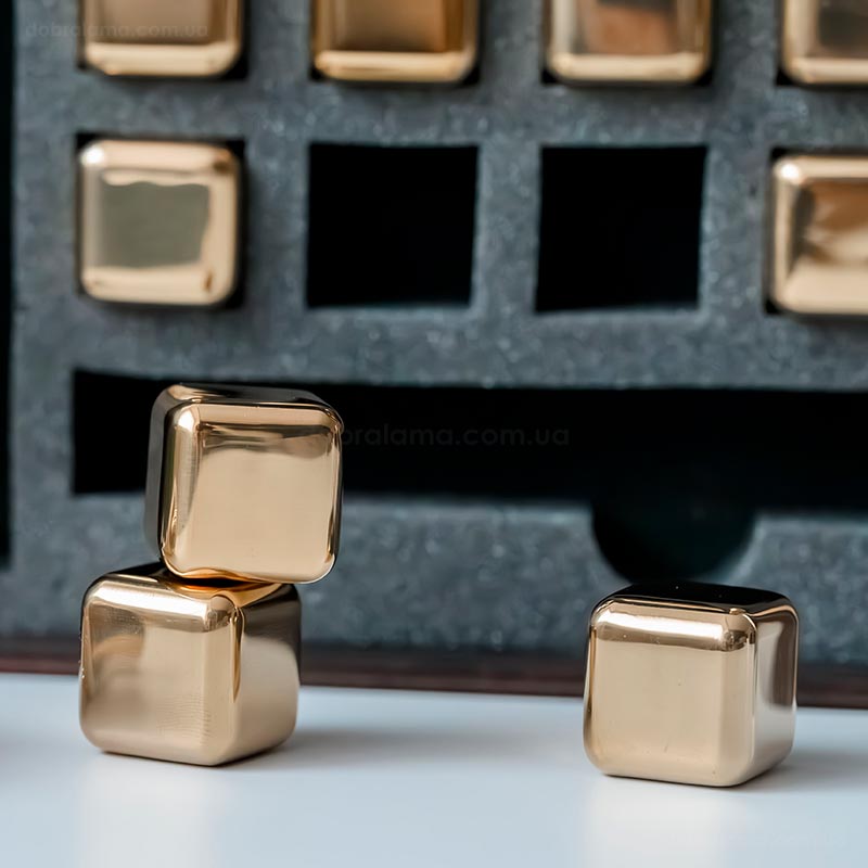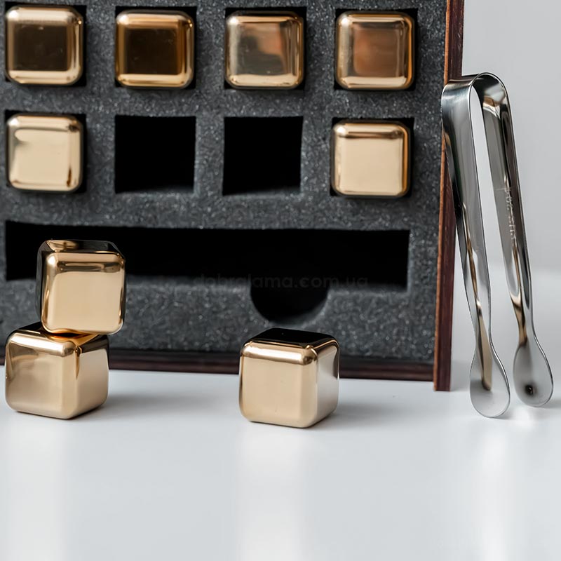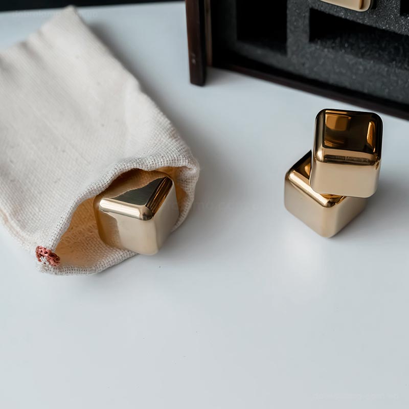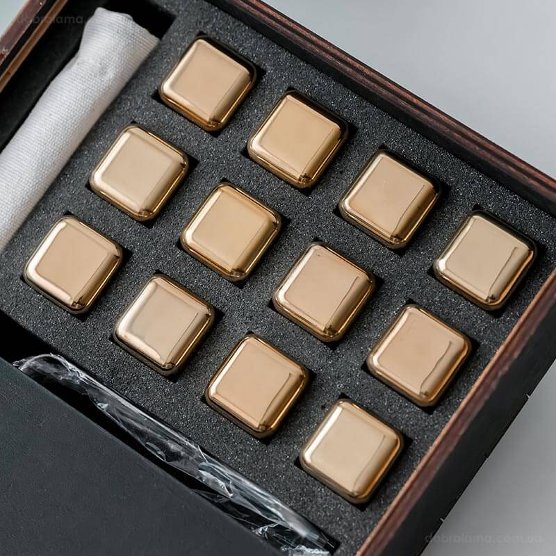Стальные кубики для охлаждения виски WS в деревянной коробке (12 шт.), золотистые