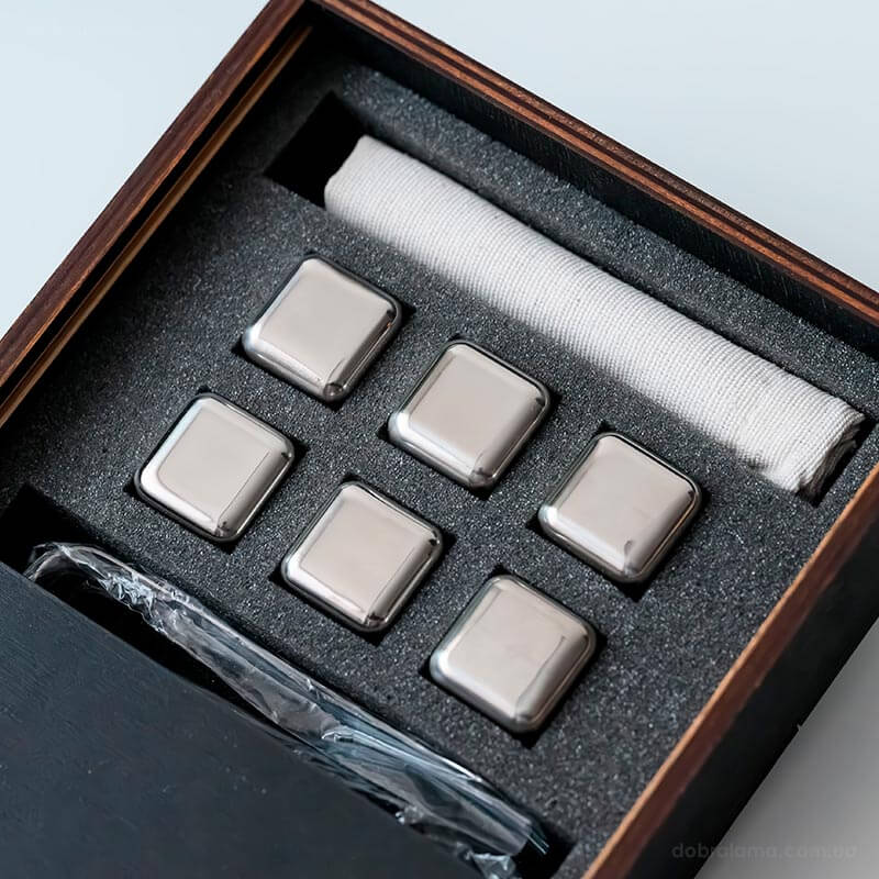 Стальные кубики для охлаждения виски WS в деревянной коробке (6 шт.)