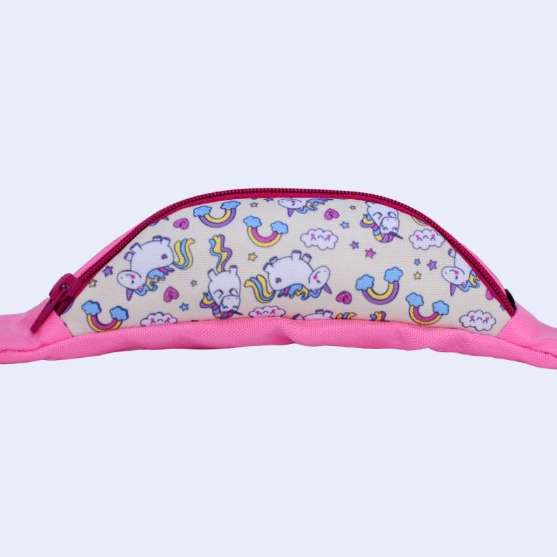 Сумка-бананка детская розовая с единорогами